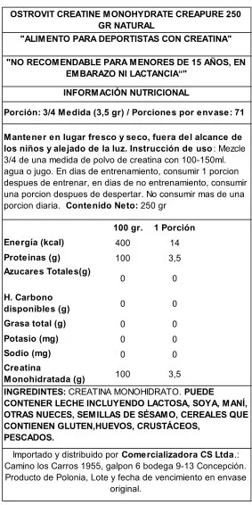 Creatina Ostrovit Creapure 250 G Sin Sabor
