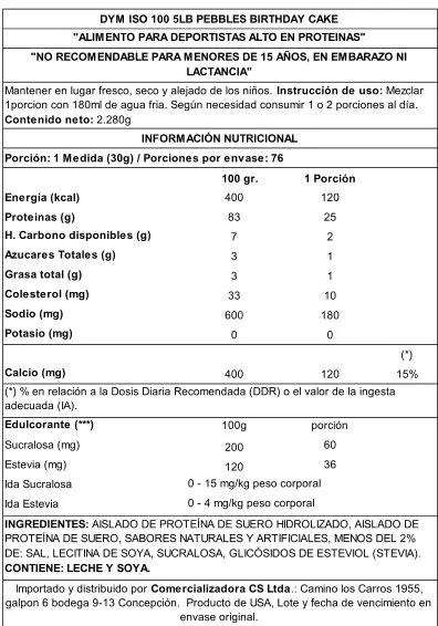 Dymatize Proteina ISO 100 5 Lb Birthday Cake Pebbles